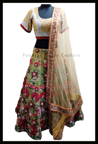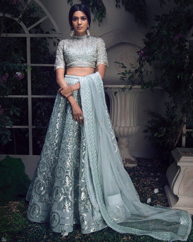 For wedding lehengas, our usual production and shipping time is 2-3 months, but due to the ongoing effects of Covid-19, it may take 4-6 months.