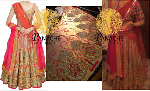 For wedding lehengas, our usual production and shipping time is 2-3 months, but due to the ongoing effects of Covid-19, it may take 4-6 months.