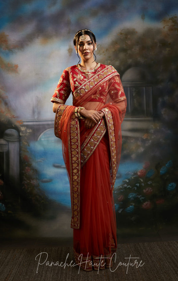This exquisite net saree in coral color is a must-have for any fashion-forward woman. The saree is made from high-quality net fabric, which is lightweight and airy, making it perfect...